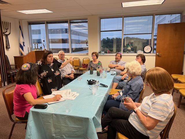 Our Friday night Kabbalat Shabbat service begins at 6:00 p.m. every week and our Saturday morning service begins at 9:30 a.m. Both services are conducted in-person and via Zoom. We have moved from our longtime home on Princeton Drive and are now just blocks away, along Rt. 22, at Penn Center in Building One Suite 530. Contact the synagogue office for the log-in information to participate in services online.